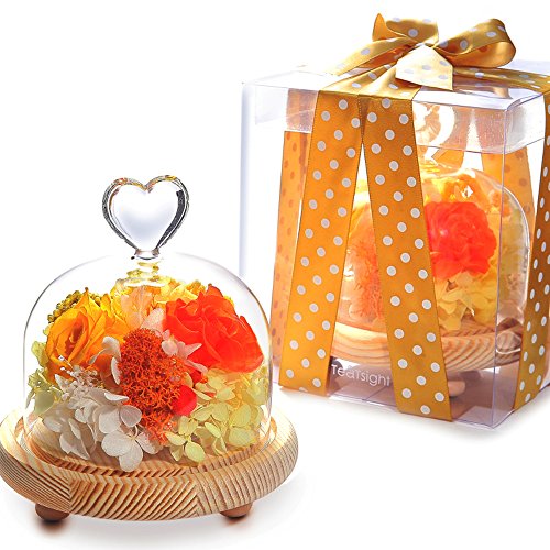 TEATSIGHT プリザーブドフラワー フラワーアレンジ ラッピング済み ハートガラスポット 3輪 ( バラ オレンジ )
