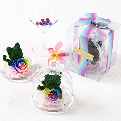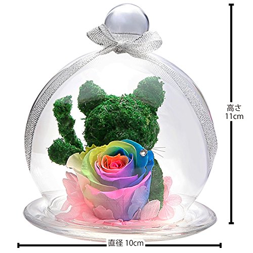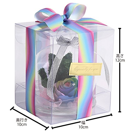 - ガラスドームが破損しないように本体は中敷きで固定しガラスドーム専用クリアボックスに入れています。商品の性質上特別な包装をすることは出来ませんが、クリアケースをリボンとシールでラッピング後、輸送用ケースで二重包装をしています。天然素材のため、花の色合い・サイズに差がありますことをご了承ください。