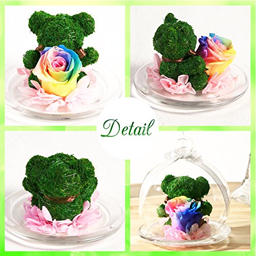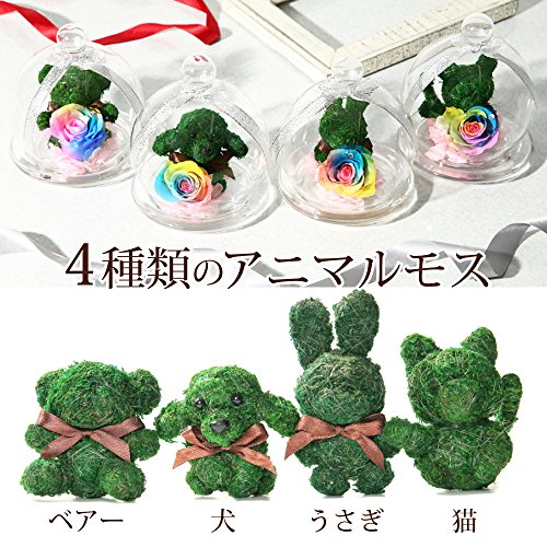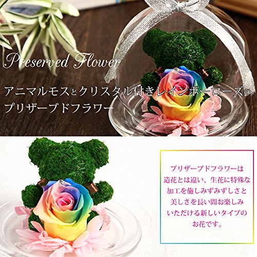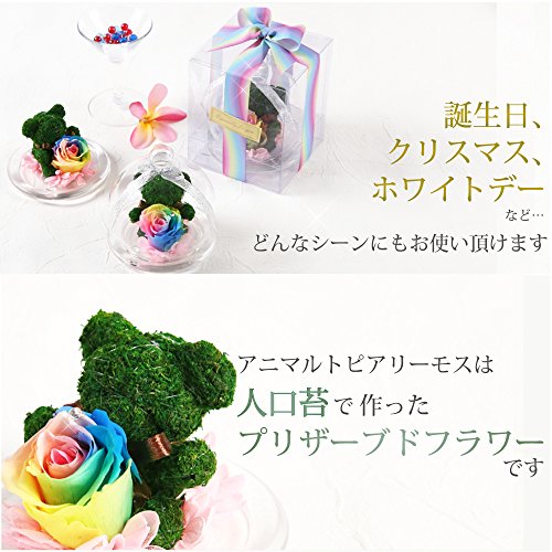 TEATSIGHT プリザーブドフラワー アニマルモス ガラスポット入り フラワーアレンジ ラッピング済み ( ベア レインボーローズ )