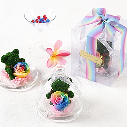 - ガラスドームが破損しないように本体は中敷きで固定しガラスドーム専用クリアボックスに入れています。商品の性質上特別な包装をすることは出来ませんが、クリアケースをリボンとシールでラッピング後、輸送用ケースで二重包装をしています。天然素材のため、花の色合い・サイズに差がありますことをご了承ください。