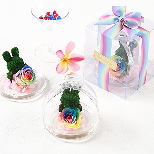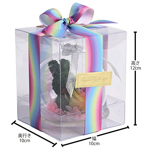 - ガラスドームが破損しないように本体は中敷きで固定しガラスドーム専用クリアボックスに入れています。商品の性質上特別な包装をすることは出来ませんが、クリアケースをリボンとシールでラッピング後、輸送用ケースで二重包装をしています。天然素材のため、花の色合い・サイズに差がありますことをご了承ください。