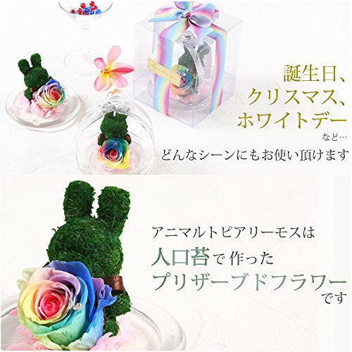 TEATSIGHT プリザーブドフラワー アニマルモス ガラスポット入り フラワーアレンジ ラッピング済み( うさぎ レインボーローズ )