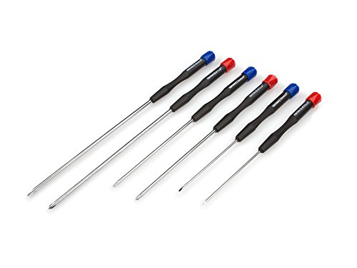 Easily reach hard-to-reach screws in electronics and jewelry using the TEKTON Long Precision Screwdriver Set. Free-turning end caps allow for constant finger pressure while driving and knurled nylon handles increase fingertip control.Set Includes:(1) Flat: 2 mm x 3 in.(1) Flat: 3 mm x 4 in.(1) Flat: 4 mm x 6 in.(1) Phillips: #00 x 3 in.(1) Phillips: #0 x 4 in.(1) Phillips: #1 x 6 in.