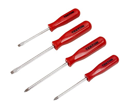 Essential tools for mechanics, homeowners or DIYers, the TEKTON 4-Piece Mechanic's Screwdriver Set features the four most commonly used screwdrivers. Constructed from hardened and tempered carbon steel shafts with a durable chrome plated finish resists corrosion. They are built to last. Precision-machined, vapor blasted magnetized tips make it easy to start a screw and help prevent lost and dropped screws during removal. The mechanic's style handles are comfortable to use. The screwdriver set is backed by a lifetime replacement guarantee. Set Includes: (2) Flat: 3/16-Inch by 3-Inch, 1/4-Inch by 4-Inch; (2) Phillips: #1 by 3-Inch, #2 by 4-Inch. So, go ahead, Take It On.