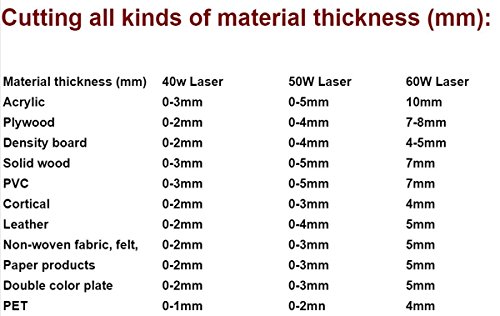 すべての非金属材料、アクリル、合板、MDF、木材、PVC、皮革、不織布、フェルト、紙製品、色版、PET等