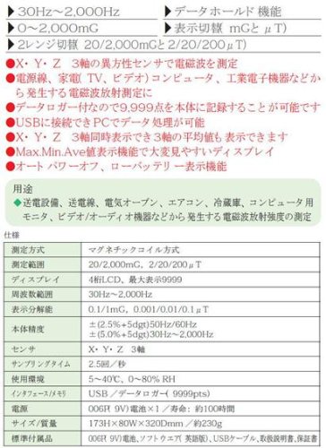 TENMARS社[TM-192D]データロガー付き三軸低周波電磁波・マイクロテスター TM-192D