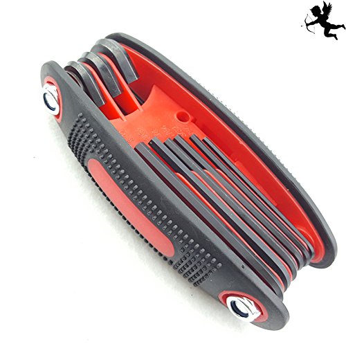 - 9 in 1サイズ,折りたたみ式六角キーセット/ラバーサイドインサートで保護された、滑り止め加工つのグリップハンドル