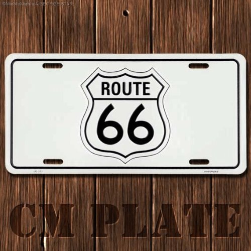 【アメリカン雑貨】★ナンバープレート型ノベルティCMプレート★ROUTE66/ホワイト★
