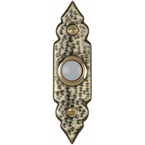 Lightedホワイト、チャイムボタンアンティークの真鍮の錬鉄装飾されたハウジング, 1 " W x 3 – 1 / 2 " Hフラッシュマウントした配線をゴールドリム, Clam Shell Pack。