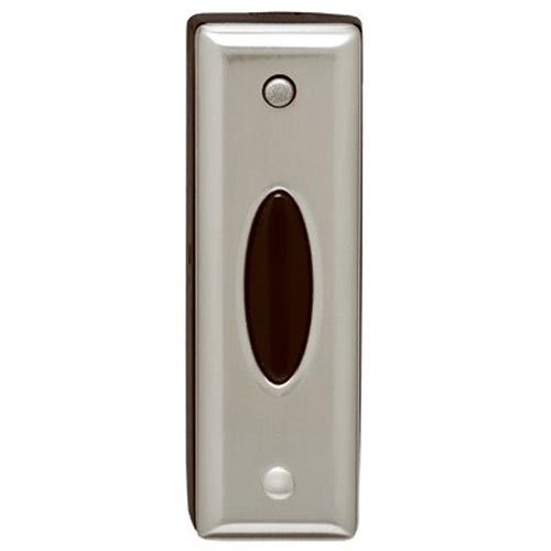 サテンニッケル、ワイヤレスドアチャイムボタンをクリックし、プレミアムサテンニッケル長方形のハウジングに黒楕円プッシュボタンをクリックし、設定された電池式、複数の入口を保証するチャイムシステムを展開、サウンドの前面にボタンをクリックし、防水、屋内または屋外で使用するためには、最大150 39 ;動作範囲、32コード、互換のすべてのCarlon、ワイヤレスチャイムの切り替えシステムでは、2つのサイズ含まれているcr2032 , 3 Vリチウム電池使用,表面マウント, 98 " L x 1 " W x 3.25 " H , Clam Shell梱包されます。