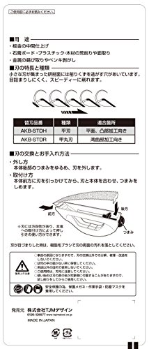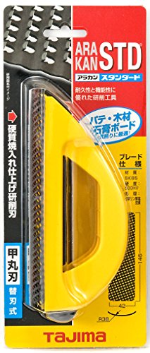 ●幅(mm):42●高さ(mm):68●奥行(mm):160●刃:甲丸刃●板金・石こうボード・プラスチック・木材研削用工具。●板金の中間仕上げ、石こうボード・プラスチック・木材の荒削り、面取り、金属のサビ取り、ペンキはがしなど、面倒な研削作業が手軽にスピーディにできる、いままでにない新しいタイプの工具です。●従来の刃物と違い安全性が高く、どなたでも簡単に使えます。●刃は高品質のスチールを超硬質焼き入れ加工後、サビ止め効果のあるパーカー処理を施してありますので、長時間の使用にも耐えます。