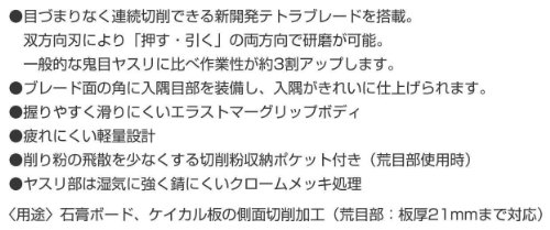 ●独自のヤスリ形状で目詰まりしにくいです。●長さ×幅×厚み(mm):270×60×25●切削面:アルミダイカスト(表面クロームメッキ処理)●グリップ部:ABS樹脂+エラストマー樹脂