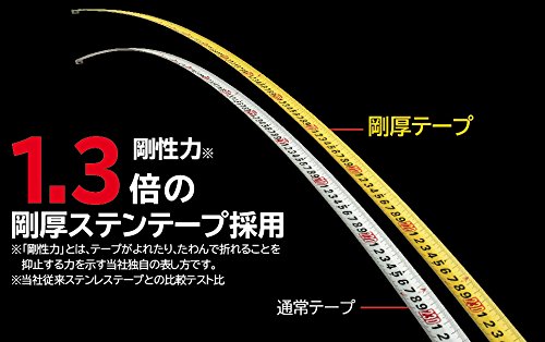●【用途】長さ測定用。●【機能・特長】弾性樹脂エラストマーカバーで全身をガードしています。0点補正移動爪です。片手で簡単脱着できる、落下防止用ベルトホルダー付です。フックガードバンパーは落下時の衝撃から爪を守ります。爪部に強力ネオジ磁石を採用しています。●【材質】テープ:SUS420J2。ケース:ABS樹脂。バネ:SUS301。【注意事項】本製品には通電性がありますので、感電に注意して下さい。テープのエッジで手を切る恐れがありますので、手袋を着用して下さい。製品仕様は予告なく変更する場合がございますので、予めご了承ください。