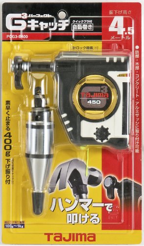 ●木部・鉄部・アルミサッシ・コンクリートに取付可、木部には叩ける貫通針でしっかりと固定できます。●【用途】●建築用下げ振り保持器及び下げ振り。●【機能・特徴】●弾力のあるエラストマー樹脂カバーでおおってあるため仕上げ面が傷付きにくく、また軍手で滑りにくい仕様になっています。●下げ振りの重量に応じたバランス調整機構付きです。●強力なネオジ磁石を採用、マグ力20kG(磁束密度130mT )です。●携帯時の不意の針の飛び出しを防ぐロック機構付です。●重さ100g~1000gの下げ振りに対応します。●【仕様】●自動巻取式。●振下げ高さ:4.5m。●セット内容:本体、クイックブラ(400G)。●対応重量:100g~1000g。●糸の長さ:4.5m。●製品重量:658g。●【材質】●ケース:ABS樹脂ボディー。●カバー:エラストマー樹脂。●下げ振り:スチール。●【商品サイズ】幅127×高さ106×奥行31mm 重量658g●商品コード:4975364057082●JANコード:4975364057082●ブランド名:タジマ●商品名:キャッチG3-4...