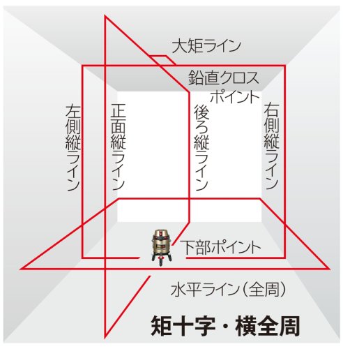 - 照射ライン:縦フルライン、横全周、ポイント(鉛直、下部)