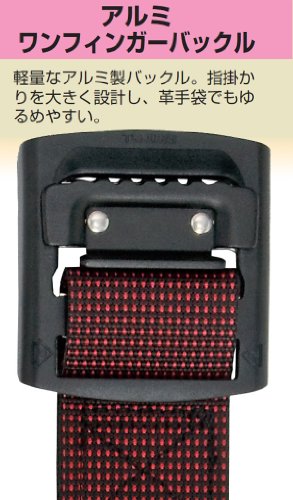 ●入数:1個●色:ドット赤●胴ベルト寸法幅×長さ(mm):50×1250●適応ベルト幅(mm):50●ベルト:ナイロン●バックル:アルミ●革手袋でも操作が簡単な軽量アルミフィンガーバックルです。