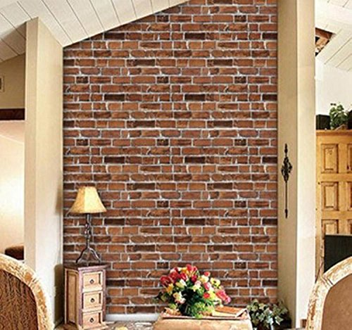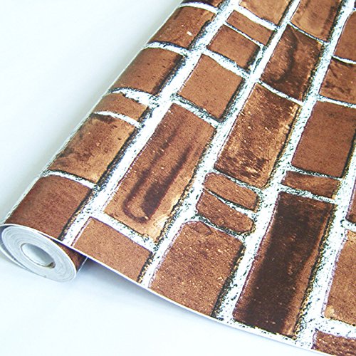 【DIY 壁紙シール】 レンガ かんたん貼付シールタイプ 45cm×10m リフォーム ウォールステッカー 防水 ダークブラウン TMS-NETクロスセット 【貼方説明書付】