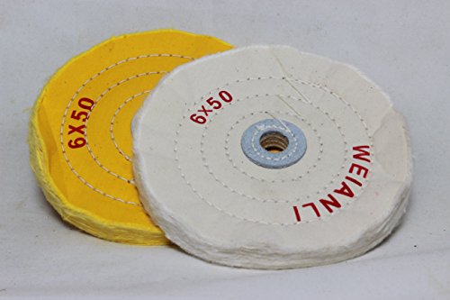 仕上 研磨 用 150 mm コットン 布 バフ ホイール 2 個 ( 黄 ・ 白 ) セット (150mmコットン)