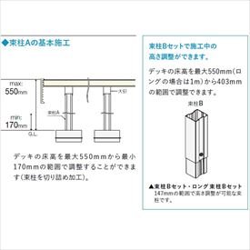●こちらの商品は、調整式束柱Aセットの仕様となります。高さ403mm~550mmの間で調整が可能です