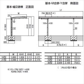 TOEX LIXIL フーゴAプラス ミニ 基本 18-22型 H28柱(H28) ポリカ板 【リクシル】 【自転車置場 サイクルポート 自転車屋根】 アルミ形材色+木目色 ホワイト+エクリュアイボリー