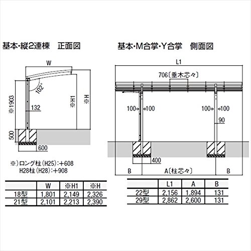 ●間口サイズ違いの合掌、奥行サイズ違いの連棟の場合は、施工時に部材・部品が入れ違うことのないようにご注意ください。