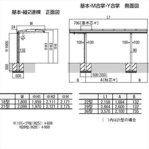 ●間口サイズ違いの合掌、奥行サイズ違いの連棟の場合は、施工時に部材・部品が入れ違うことのないようにご注意ください。
