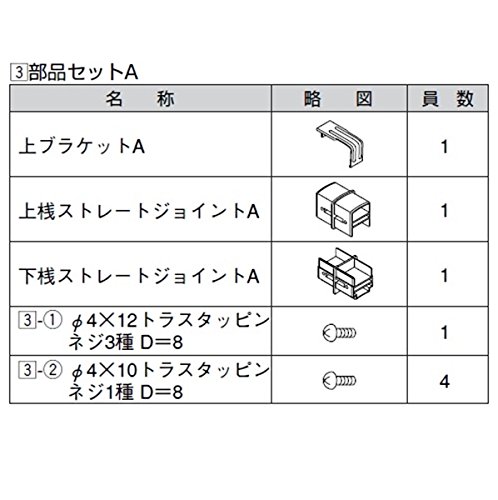 ● 間仕切りタイプ、フリーポールタイプとも、柱と取付部品が別梱包になっています。柱1本につき、部品セットAを1セット使用してください。