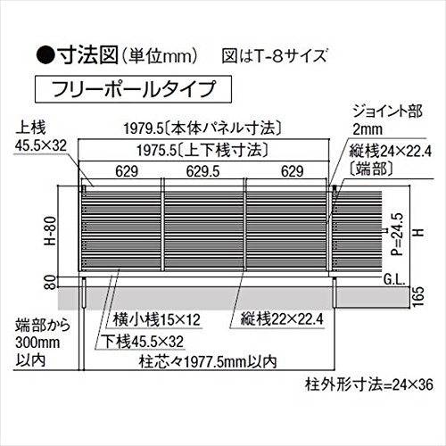 LIXIL TOEX ライシスフェンス1型 フリーポールタイプ 本体 T-10 【リクシル】 【アルミフェンス 柵】 シャイングレー