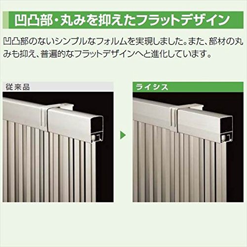 ●スタンダードにさらなる進化をもたらすために、デザイン性と機能性をアップ。ボリューム感のある従来のデザインはしっかりと受け継ぎながら、凹凸と丸みを抑えたフラットなデザインへと進化しました。TOEXのシャレオRと、新日軽のエクジスRの良いところを受け継いで、ライシスシリーズは完成しました。