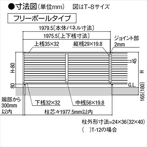 LIXIL TOEX プレスタフェンス5型 フリーポールタイプ 本体 T-12 【リクシル】 【アルミフェンス 柵】 シャイングレー