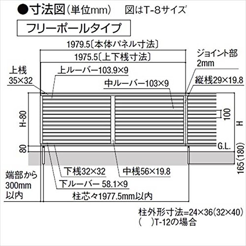 LIXIL TOEX プレスタフェンス8型 フリーポールタイプ 本体 T-6 【リクシル】 【アルミフェンス 柵】 シャイングレー