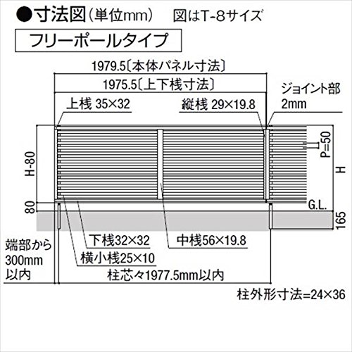 LIXIL TOEX プレスタフェンス3型 フリーポールタイプ 本体 T-8 【リクシル】 【アルミフェンス 柵】 ナチュラルシルバーF