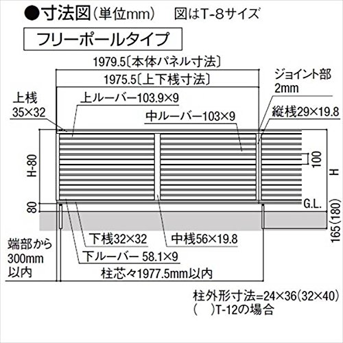 LIXIL TOEX プレスタフェンス8型 フリーポールタイプ 本体 T-12 【リクシル】 【アルミフェンス 柵】 オータムブラウン