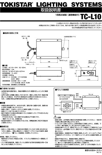 メーカー: TOKI CORPORATION (TOKISTAR)/ トキ・コーポレーション(トキスター) シリーズ名:1回路点滅器 W122×D190×H37mm 入力電圧 :AC12V-24V 50/60Hz 最大許容電流:10A 製品重量 :約280g 使用周囲温度:0-40℃ 点滅パターン:全点全滅 :ソフト全点全滅 速度調整範囲: 点滅 :約0.1-1.5秒 :ソフト点滅:約0.5-5.0秒 その他の機能:通信機能による同調点滅 ■注意 配線工事は、必ず電気工事店又は有資格者に依頼してください。一般の方の電気工事は法律で禁止されています。 トランスの一次側(100V)と二次側を間違えて接続しますと、点滅器、ランプ共に一瞬で破損してしまいますのでご注意ください。 本製品は電子トランス(ETRシリーズ)を電源として使用することはできません。必ず巻線トランス(TRシリーズ)との組み合わせでご使用ください。 各線の接続は、圧着端子などで確実に接続した上で、ビニールテープなどで絶縁を行ってください。リード線がショートしますと点滅器が破損します。 接続が不完全ですと、接続部が発熱し危険です。 各リード線を延長する場合は、1.25mm2以上の電線を使用してください。細いリード線を使用すると熱が発生して危険です。 本製品はAC100Vでは使用できません。必ず12~24Vの電源トランスを使用してください。 ■設置について 本製品は屋内仕様です。水のかかる所、湿気が多く結露する所、湯煙のあたる所には設置しないでください。 風通しが良く、土台のしっかりした場所に設置してください。 放熱スペースを十分に設けてください。 屋外で使用される場合はTOKISTAR製のトランス収納ボックス「TR-BOX-SUS」が別途必要とされます。 「TR-BOX-SUS」1台に収納できる台数は以下の通りです。 電源トランス1台、点滅器3台 他社製の収納ボックスを使用されるときは、熱機器収納に対応する製品をご使用ください。 関連キーワード コントローラー 点滅