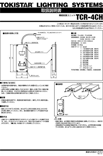 メーカー: TOKI CORPORATION (TOKISTAR)/ トキ・コーポレーション(トキスター) シリーズ名:機能拡張ユニット 適応機器:TC-L28C、TC-400BB 速度調整範囲:2点2滅:約0.05~0.3秒 :その他:約0.05~1.0秒 外形寸法:W60×D145×H28mm 使用温度範囲: 0~40℃ 本体重量:約180g 点滅パターン: 0:全点灯 1:1点3滅流れ点滅 順方向 2:2点2滅流れ点滅 順方向 3:3点1滅流れ点滅 順方向 4:1点3滅流れ点滅 逆方向 5:2点2滅流れ点滅 逆方向 6:3点1滅流れ点滅 逆方向 7:交互点滅 8:順点順滅 9:全点全滅 10:デモパターン1 11:デモパターン2 その他の機能:通信機能、手動調光、点滅速度調整 ■注意 配線工事は、必ず電気工事店又は有資格者に依頼してください。一般の方の電気工事は法律で禁止されています。 本製品単体では点滅器の機能を有しておりません。必ずTOKISTAR製の点滅器TC-400BB、またはTC-L28Cと組み合わせてご使用ください。 ■設置について 本製品は屋内仕様です。高温多湿の場所を避け、操作しやすい場所を選んで設置してください。 関連キーワード コントローラー
