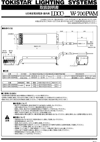 TOKISTAR LED用定電流電源 PWM調光タイプ 定格入力AC100V/200V 39VA 定格出力700mA 33W 屋内用 LDCC-33W-700PWM