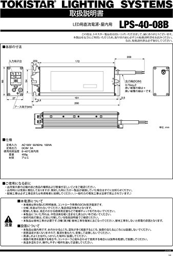 TOKISTAR LED用直流電源 定格入力AC100V 100VA 定格出力DC8V 5A 屋内用 LPS-40-08B