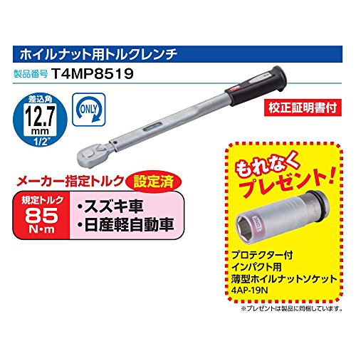 TONE(トネ) ホイルナット用トルクレンチ・プロテクター付インパクト用薄型ホイルナットソケット4AP-19N付 差込角12.7mm トルク85N・m T4MP8519
