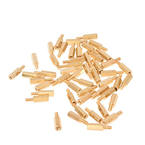 TOOGOO 50個 黄銅スクリュー六角形スタンドオフスペーサー M3 オスx M3メス 12mm長さ