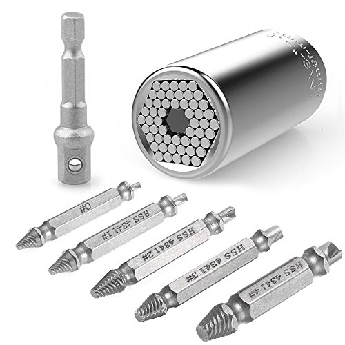 TOOGOO ユニバーサルソケットダメージスクリュープーラーグループ、多目的7mm-19mmユニバーサルソケットアダプターレンチ、5本のスクリューリムーバーで簡単に剥がれたり損傷したスクリューを取り外すことができる