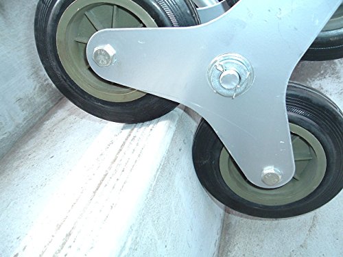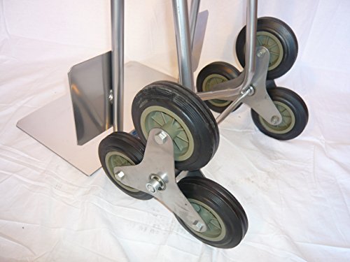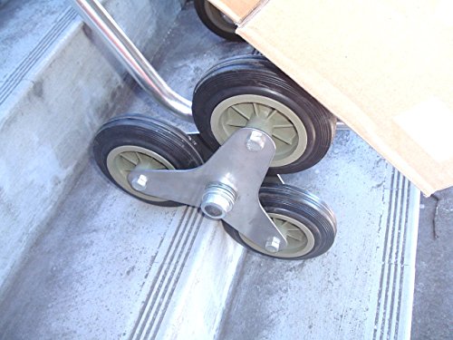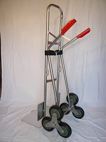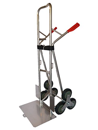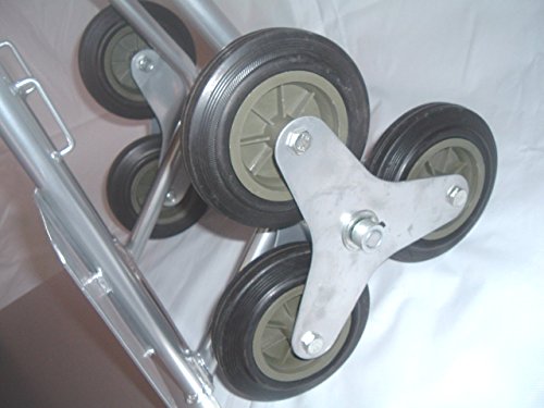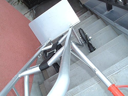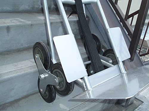 ◆TOOL ICHIBA製 スチール階段昇降運搬車 HT002ST-6 ●3輪部を階段角に当てることにより人力で昇降可能です。 ●背面バーを湾曲させてあり円筒形荷物も積載可能。 ●荷台サイズワイドW500×D280mm。●上下左右にベルト通し付。縦方向にベルトがけができます。●ベルト付●階段角を削らない3輪スパイダー。 ●昇降能力は人力の範囲内となり概ね20~65程度を目安にしてください。●階段蹴上げは16~21㌢を想定してあります。●木造階段・大理石等の高級材料の階段・螺旋階段での使用は不可となります。●冷蔵庫・コピー機等は電動クローラータイプを購入願います。●移動中・保管中にコキズが付くことがございます。実使用に際し、支障のない場合、ご容赦ください。●佐川ラージ便制限サイズの為、ビニール梱包での発送となります。●お客様都合による返送の場合は佐川正規運賃4806円~11800円の送料がかかります。