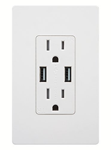 Ultra High Speed Power Charging to two USB devices at the same time without adapters., Dual "Smart" USB ports precisely "read" the power need and deliver optimum power charge accordingly., 4.0 Amps, 5VDC with dual USB port charging provides the fastest charging to iPhones, iPad, iPad mini, other cells, tablets and USB devices., Tamper-Resistant design and screwless wall plate increases the electrical safety level by preventing the attempting to insert objects in to the outlet or open the plate., Back and side wired for easy installation, UL listed.