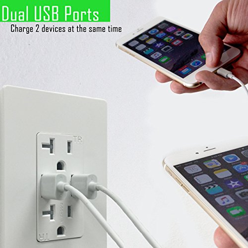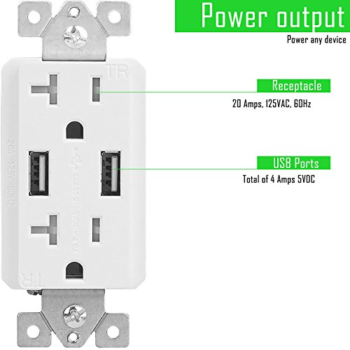 TOPGREENER TU2204A 4A High Speed Dual USB Charger Receptacle 20A Tamper Resistant Outlet & Safety Plate, White [並行輸入品]