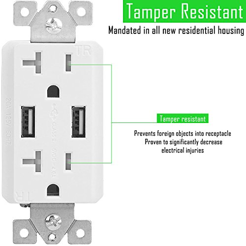 - Tamper-Resistant design and screwless wall plate increases the electrical safety level by preventing the attempting to insert objects in to the outlet or open the plate
