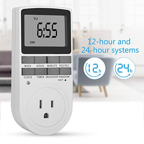 タイマーソケット タイマースイッチソケット 12/24時間 電気コンセント プログラマブルタイマスイッチソケット 高精度 1.2Vバッテリー(01)