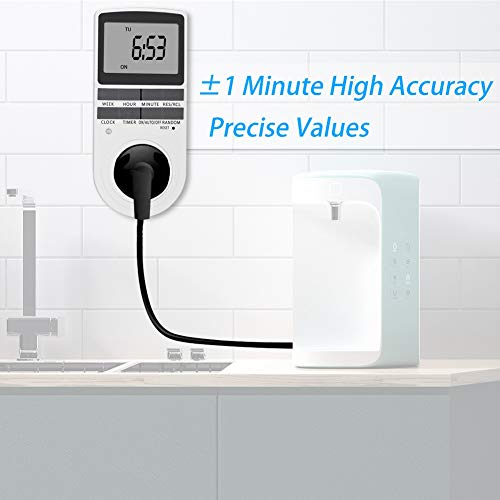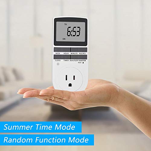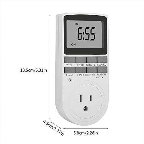時間、分、週、温度を表示します。 12時間と24時間のシステムを自由に切り替えて、このタイマースイッチソケットをさまざまなデバイスや状況に適したものにします。 サマータイムとランダムファンクションモードの2つの時間モードは、異なる装置で動作することを可能にする。 ±1分の高精度は正確な値を保証します。 大容量のNIMH 1.2Vバッテリーは、このスマートタイマーソケットを100時間以上連続して動作させます。