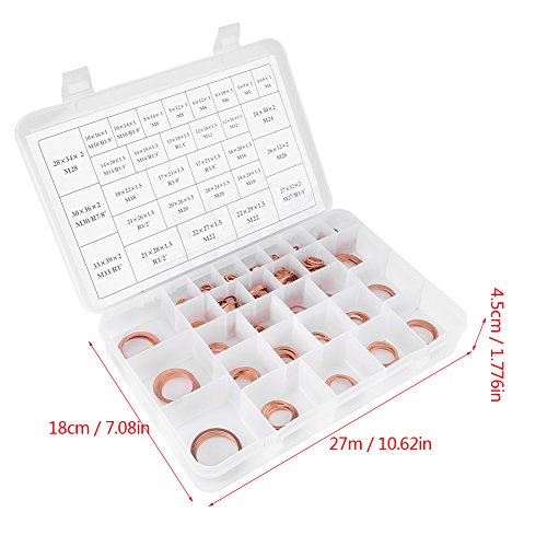銅ワッシャ クラッシュワッシャ フラットシール 銅ワッシャフラットリングセット 銅溜め 568個 30サイズ プラスチックボックス 導電 熱伝導 サンププラグ 水 燃料 油圧継手