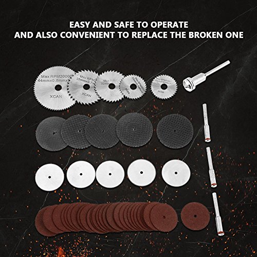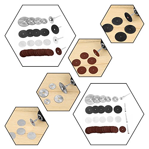 金属切削用の樹脂切削ディスク、HSS切削用の木材切削用ディスクですので、これもセットで木と金属の両方を切断できます。硬質で繊細な素材を含むディテール作業に最適な回転工具に適しています。操作が簡単で安全で、壊れたものを交換するのにも便利です。この項目は、この実用的な回転ツールキットで、55pcsを含んで、それはあなたのdiyを作るか、仕事を滑らかに修復します。