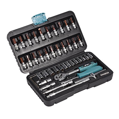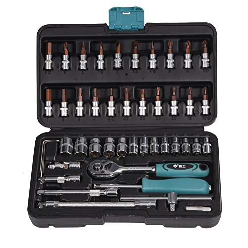 5. 46ピースは、最も人気のあるソケット、ラチェットレンチ、六角キー、ビット、ユニバーサルジョイントなどのコレクションを含みます。