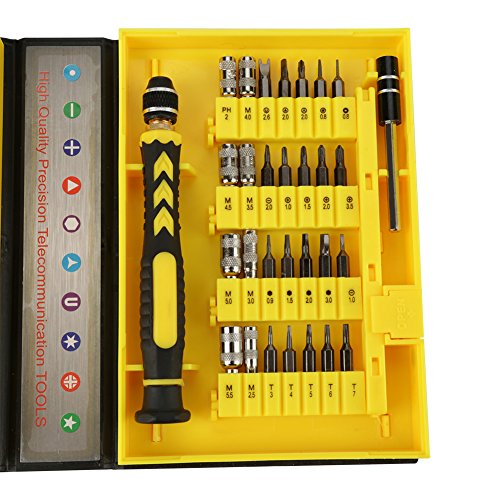 - 電話、コンピュータ、家電製品などのための理想的な電子修理ツールキット。